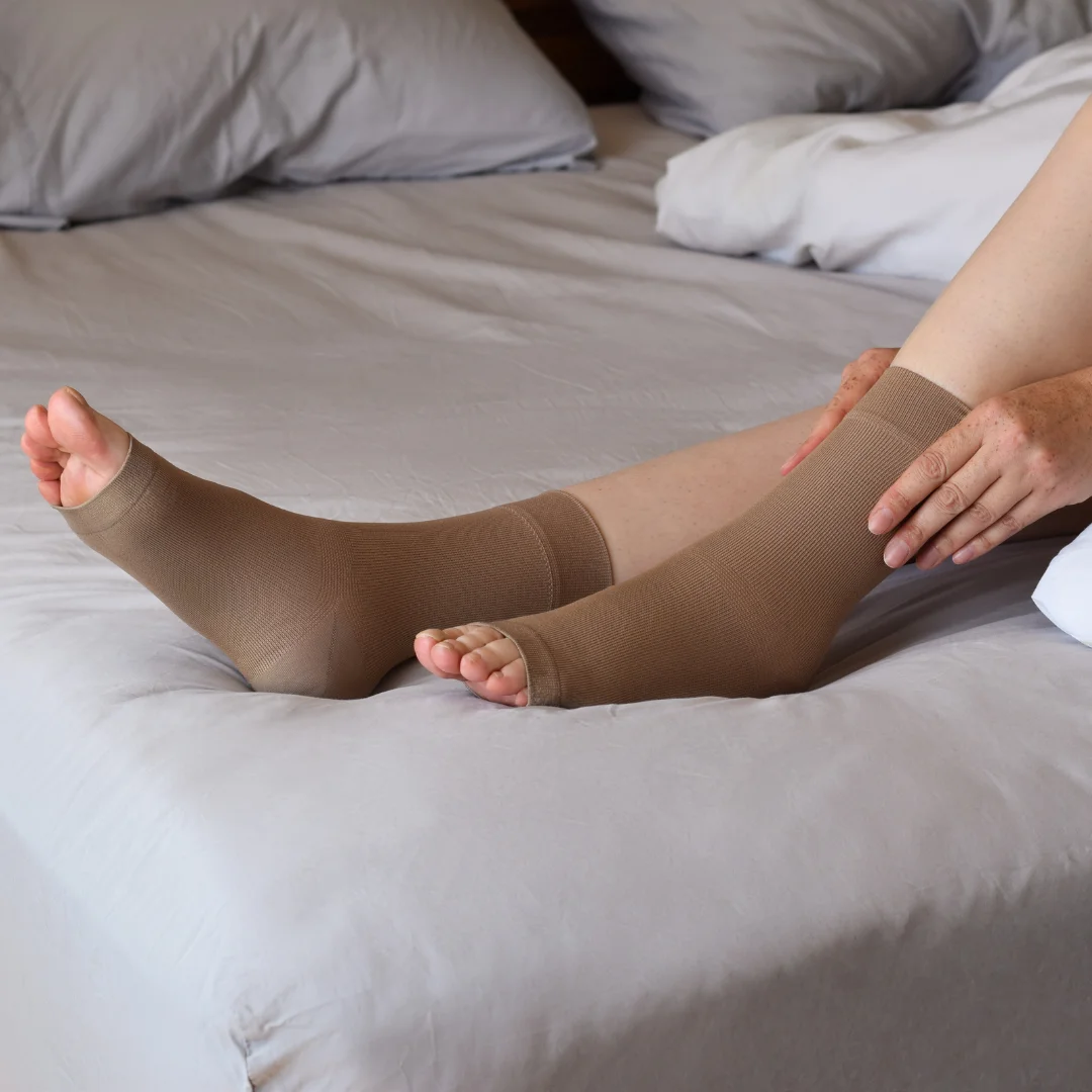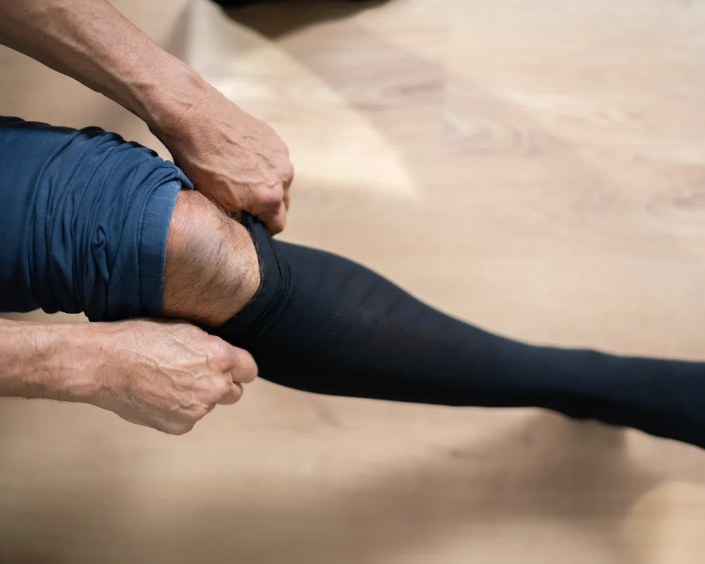 بهترین زمان پوشیدن جوراب واریس، صبحها بلافاصله بعد از بیدار شدن است؛ زمانی که پاها هنوز ورم نکردهاند.